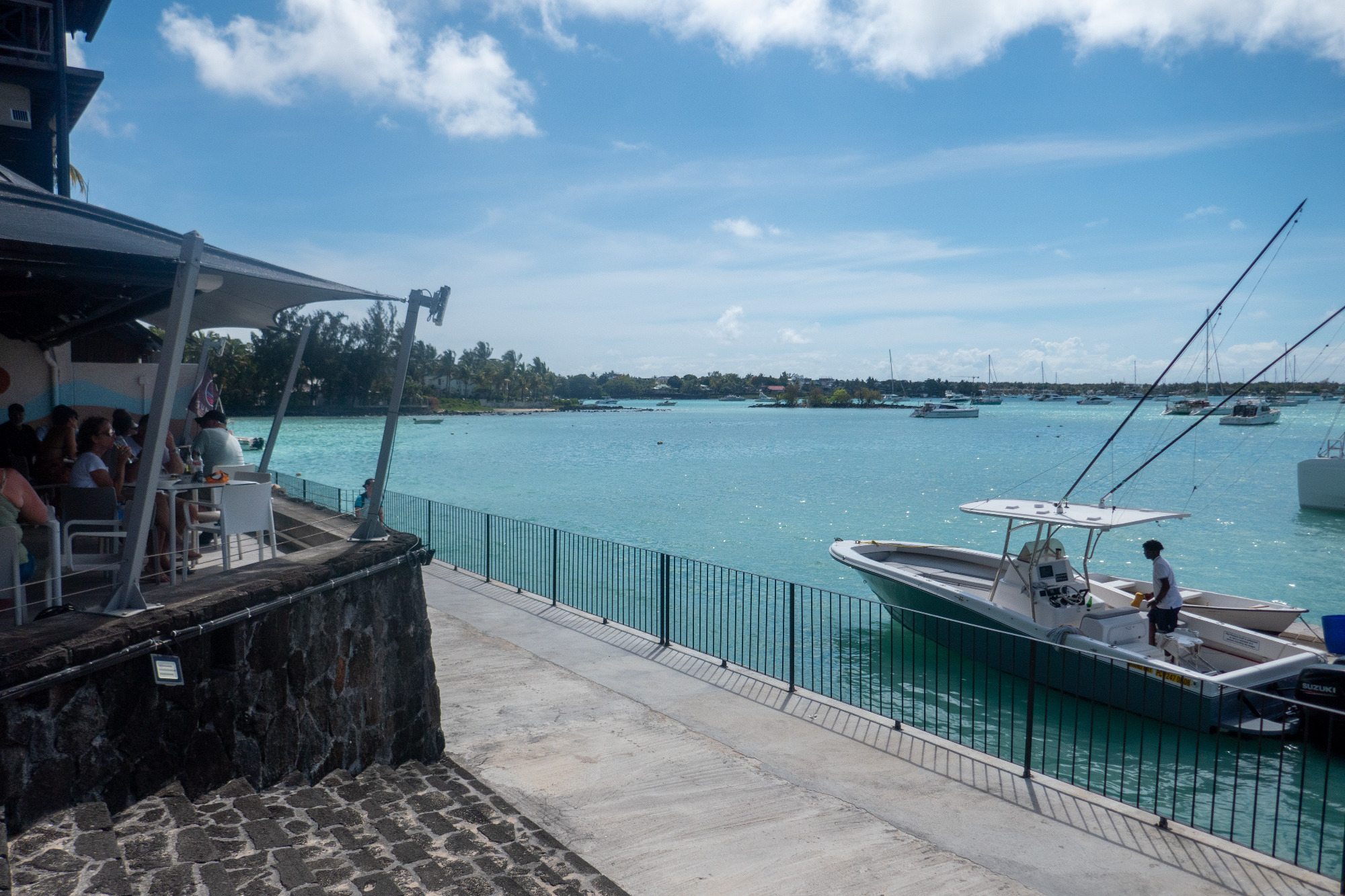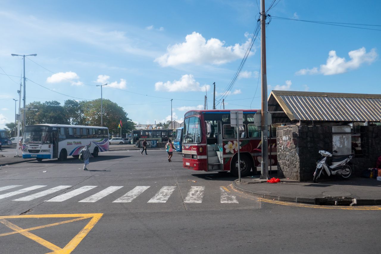Alle für Flic en Flac zutreffenden Busse fahren vom kleinen Busbahnhof im angrenzenden Ort Wolmar ab. Wer es ausprobieren möchte, eine etwa 5-minütige Fahrt zum Einkaufszentrum „Cascavelle“ ist dafür gut geeignet. Busse fahren ausreichend. Eine Fahrt kostet 30 MUR (55 Cent) je Person. Eine Fahrt mit dem Taxi ist mit etwa 5 € deutlich teurer.